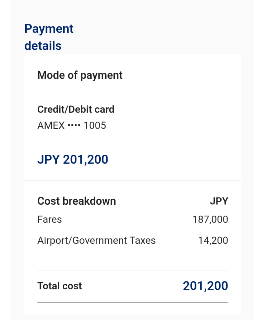 シンガポールまでの航空券は片道4人で201,200円